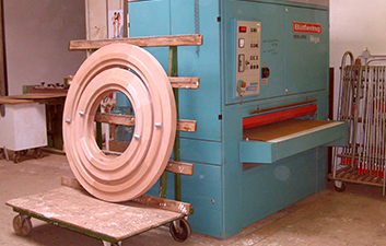 ... vor einer Breitbandschleifmaschine, Schleifbreite 135 cm